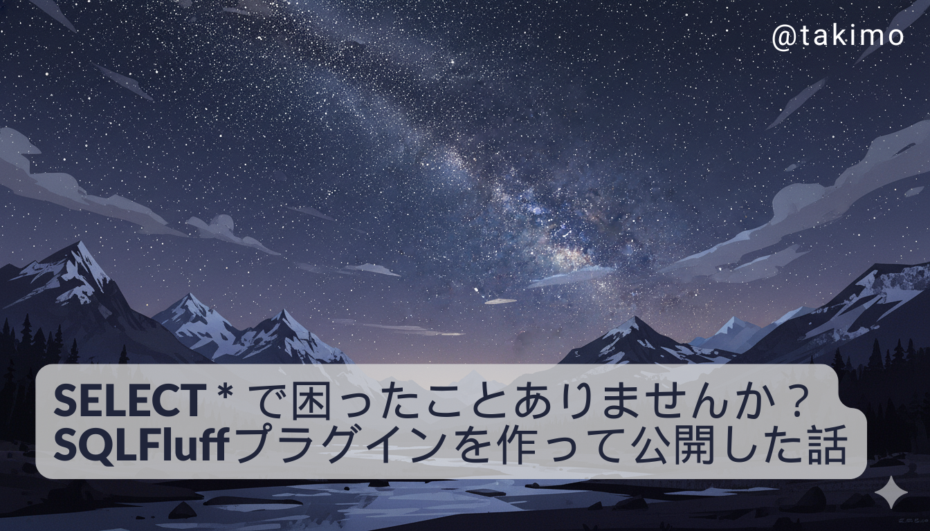 今日は、誰もが一度は書いたことがある というSQL文について、そしてそれをチェックするための SQLFluff プラグインを作成して公開した話をしたいと思います。